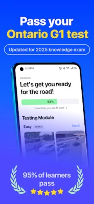 1. Proprietary Question Bank: Developed over 13 years, our Ontario-specific materials are unmatched in accuracy and relevance. MTO rules, DriveTest format, G1 knowledge (written) test, road rules, and road signs – everything you need to practice with confidence.