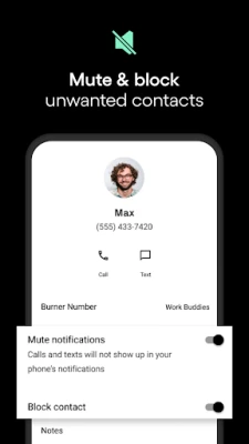 Need some uninterrupted me-time? Burner's Do Not Disturb feature allows you to establish quiet hours or specific times when you don't want to be bothered by calls and text messages.