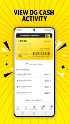 . myDG® Wallet – See your exclusive offers, filter and search your clipped Coupons and Cash Back, access your myDG® ID, scan DG Cash to spend in store, and more.