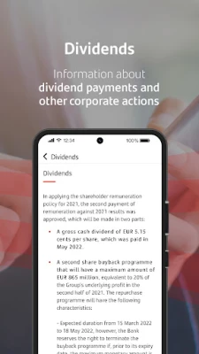 The new Santander Shareholders and Investors App is available in Spanish and English and offers the following functionalities: