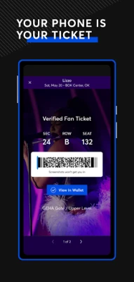- Scan into your events with the app or upload your seats to Apple Wallet (mobile-entry events only).