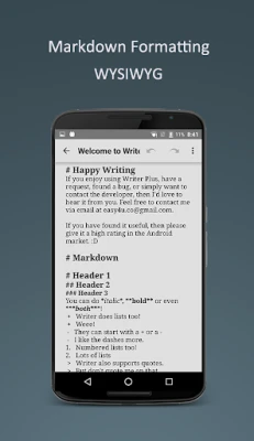 Markdown is a lightweight markup language with plain text formatting syntax. Writer Plus supports:
